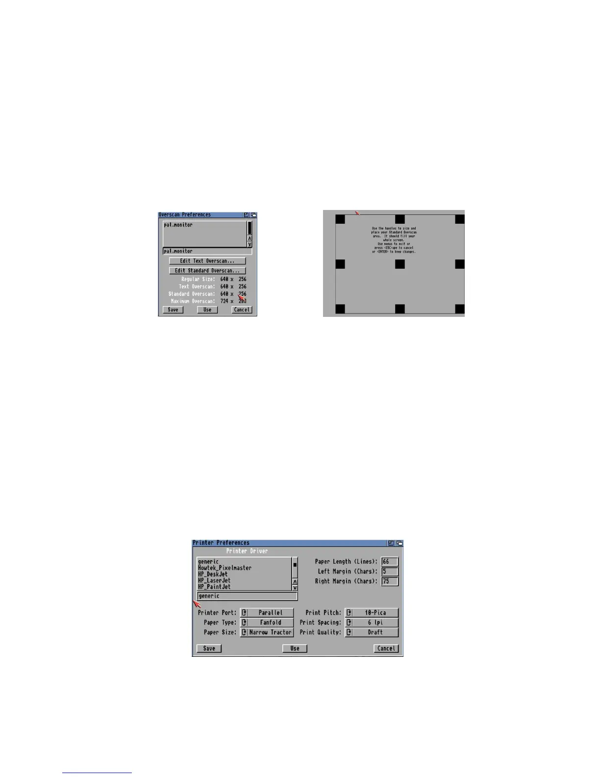 The Printer preference selects the printer driver (from Devs:Printers) and sets other options: