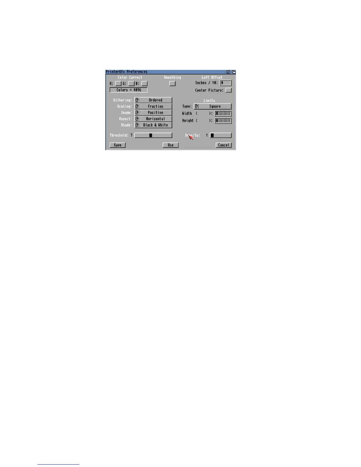 Smoothing: Smooths diagonal lines by certain dithering techniques (except Floyd-Steinburg)
