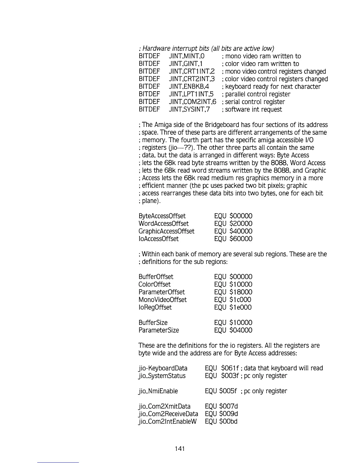 The Amiga side of the Bridgeboard has four sections of