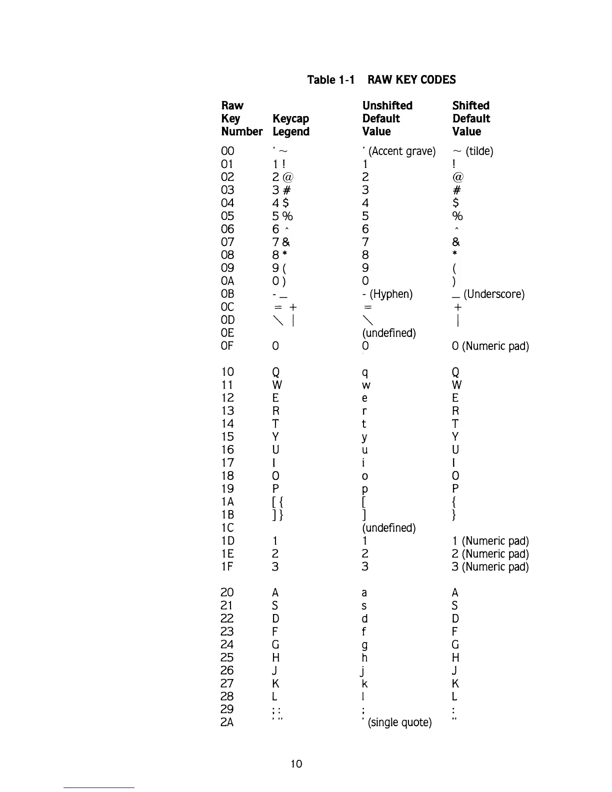 KEY CODES