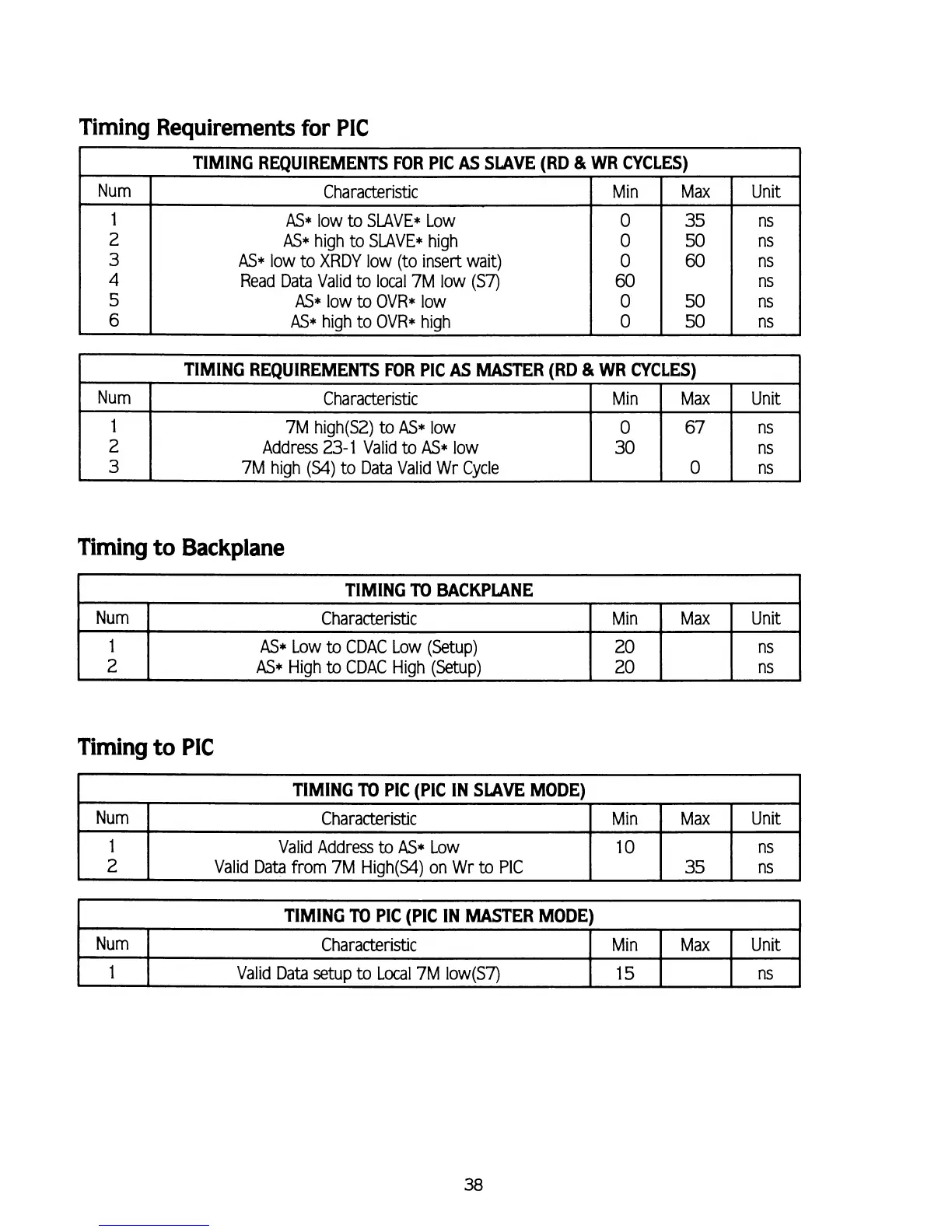 TlMlNG REQUIREMENTS FOR PIC AS SLAVE (RD