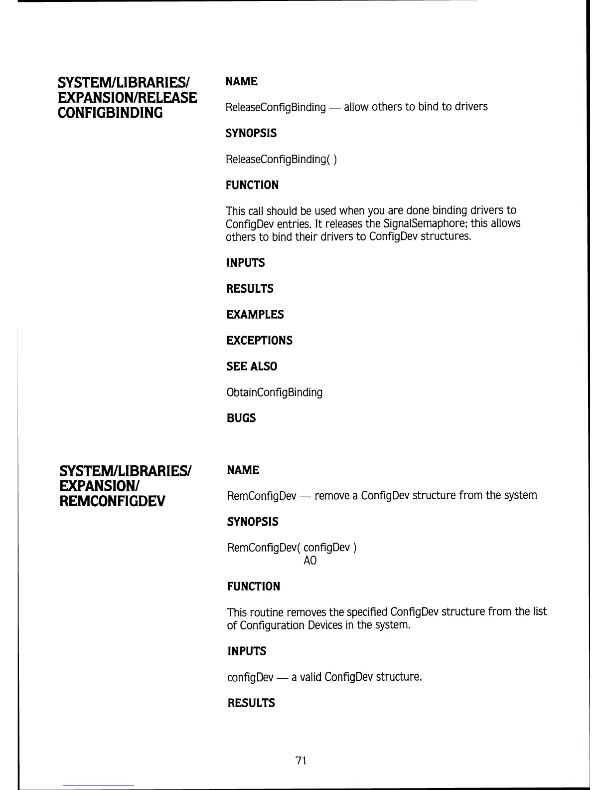 This routine removes the specified ConfigDev structure from the