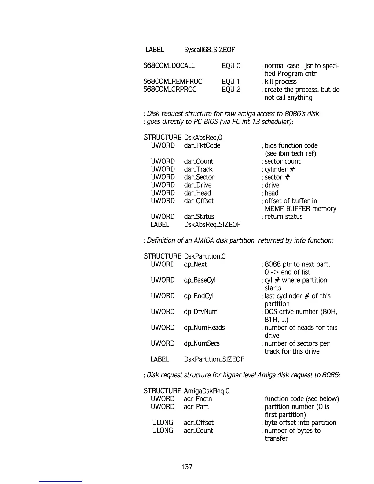Disk request structure for raw amiga access to 8086's disk