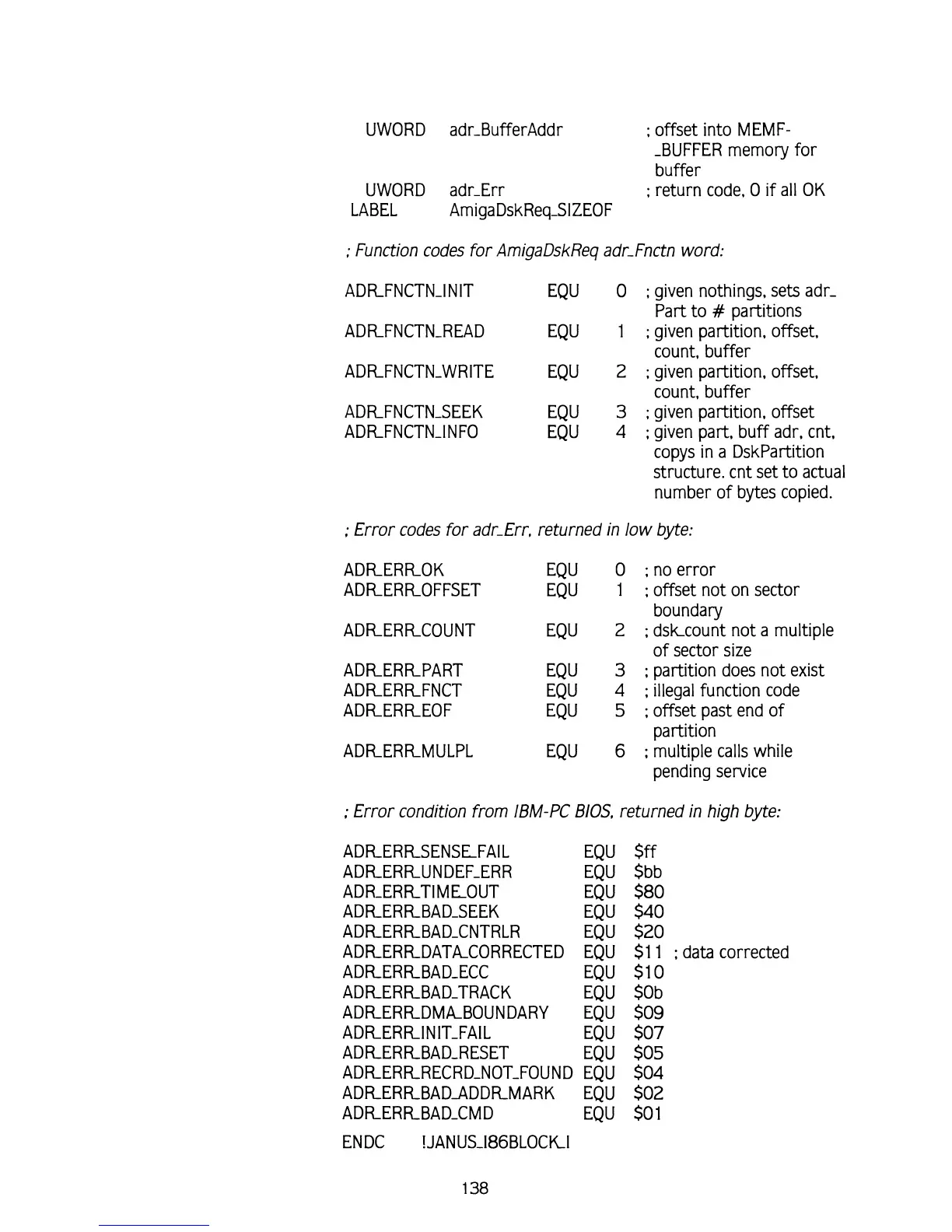 Function codes for AmigaDskReq adr-Fnctn word:
