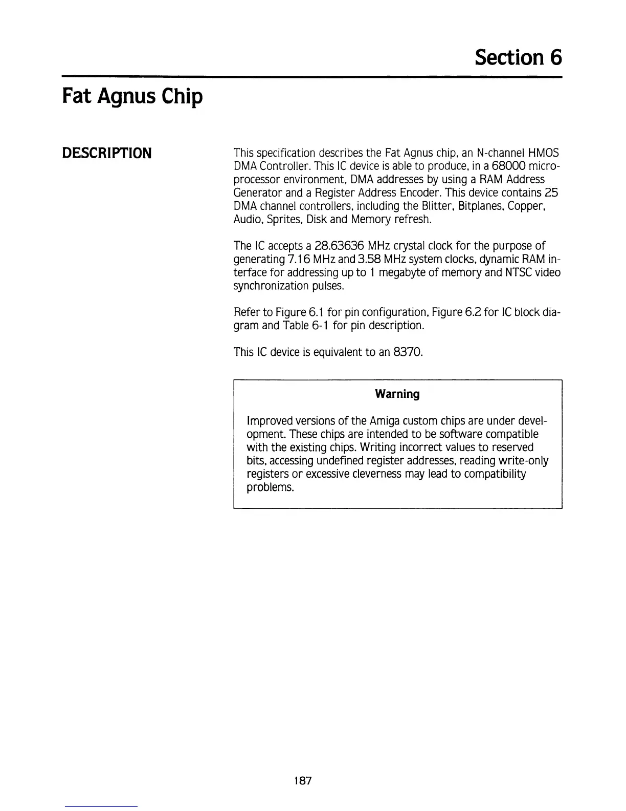 This specification describes the Fat Agnus chip, an N-channel HMOS