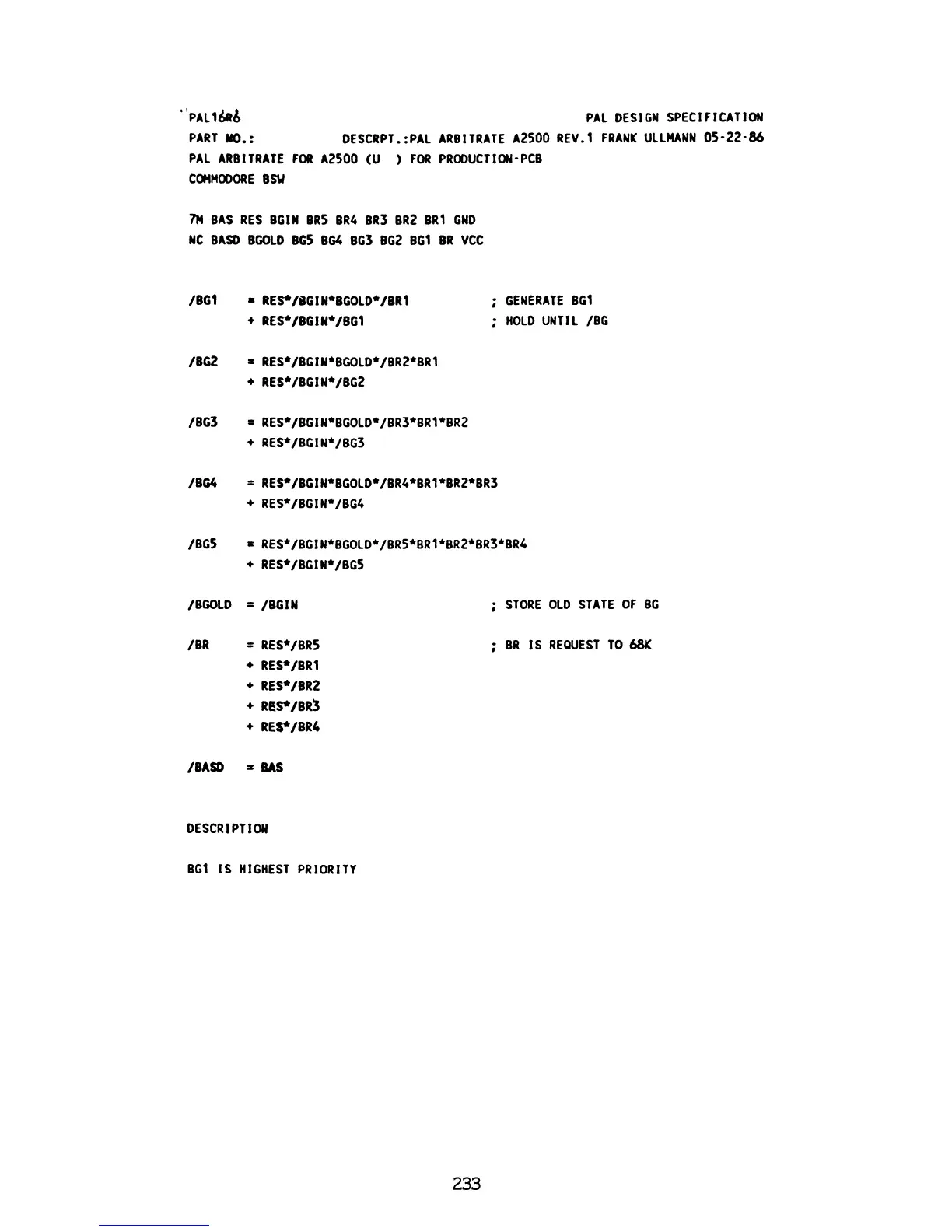 DESCRPT.:PAL ARBITRATE A2500 REV.l FRANK ULLMANN 05-22-86