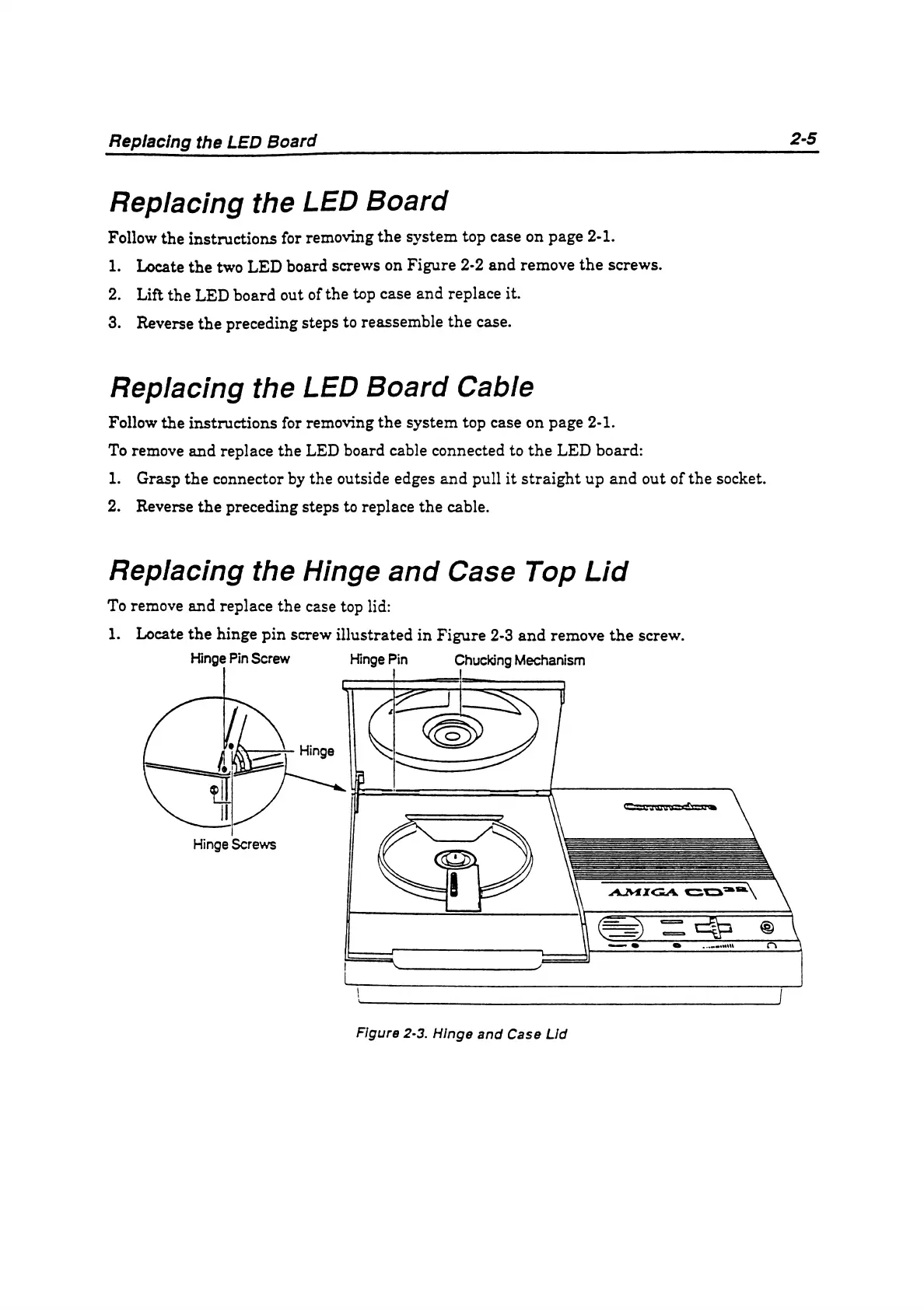 1. Locate the hinge pin screw illustrated in Figure 2-3 and remove the screw.
