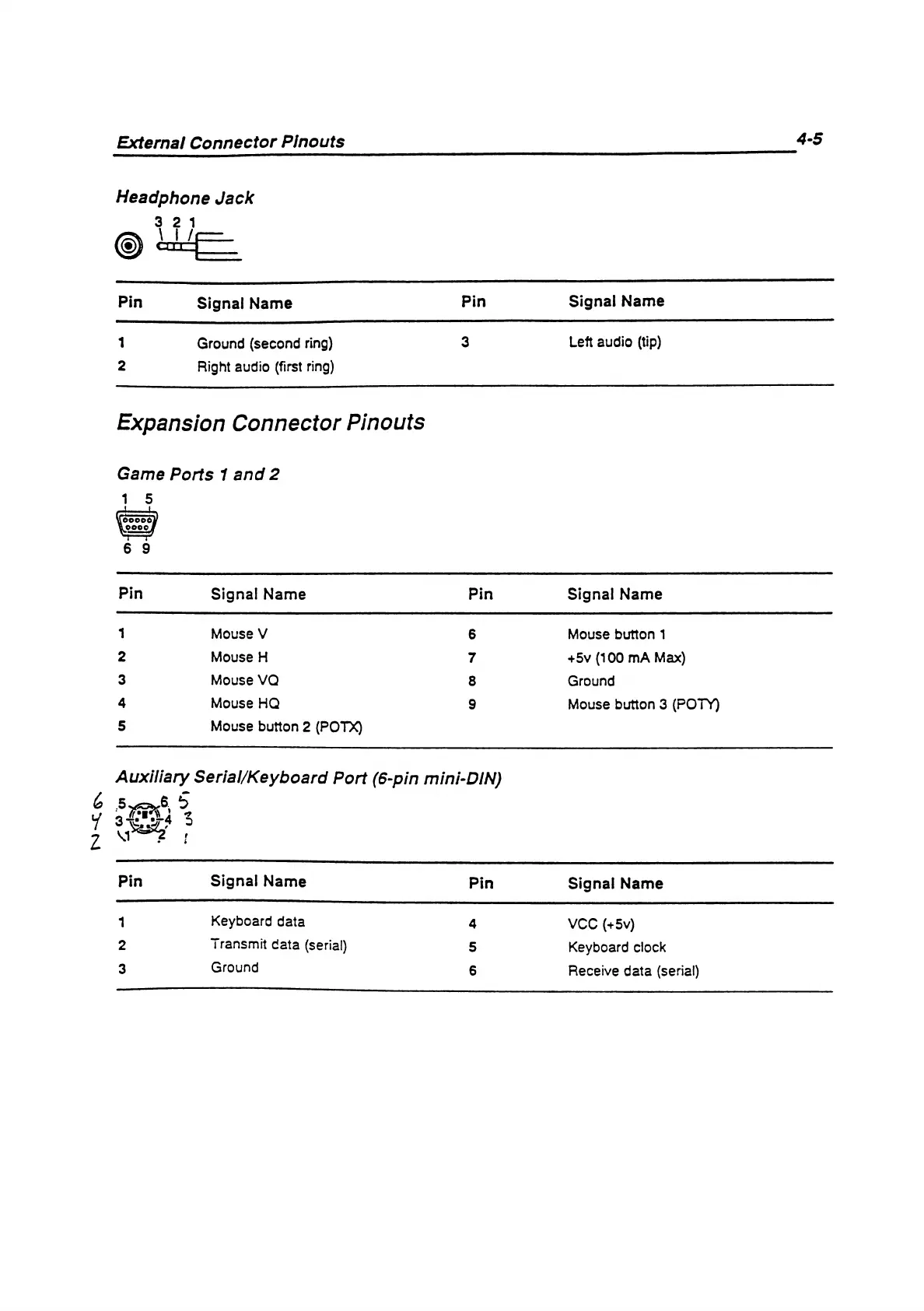 Commodore Amiga CD32 - Expansion Connector Pinouts; Headphone Jack; Auxiliary Serial;Keyboard Port