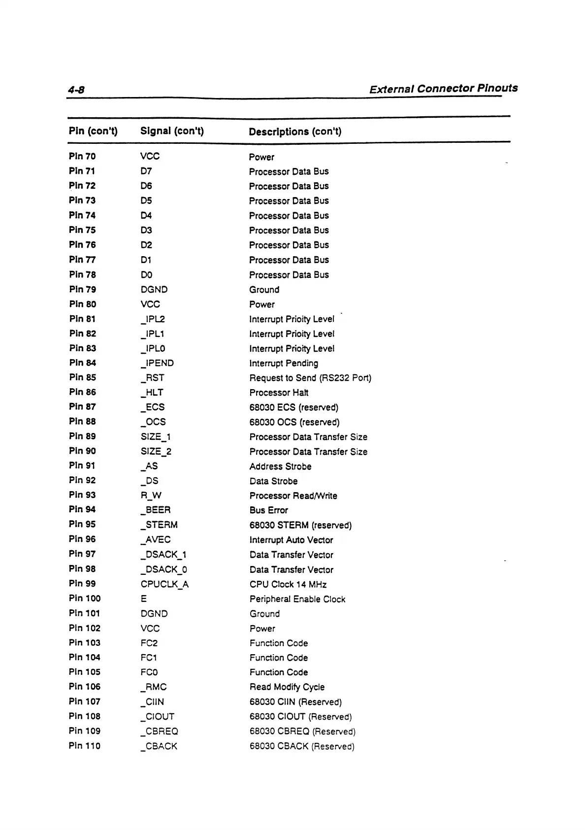 Pin (con't) Signal (con't) Descrlptions (con't)