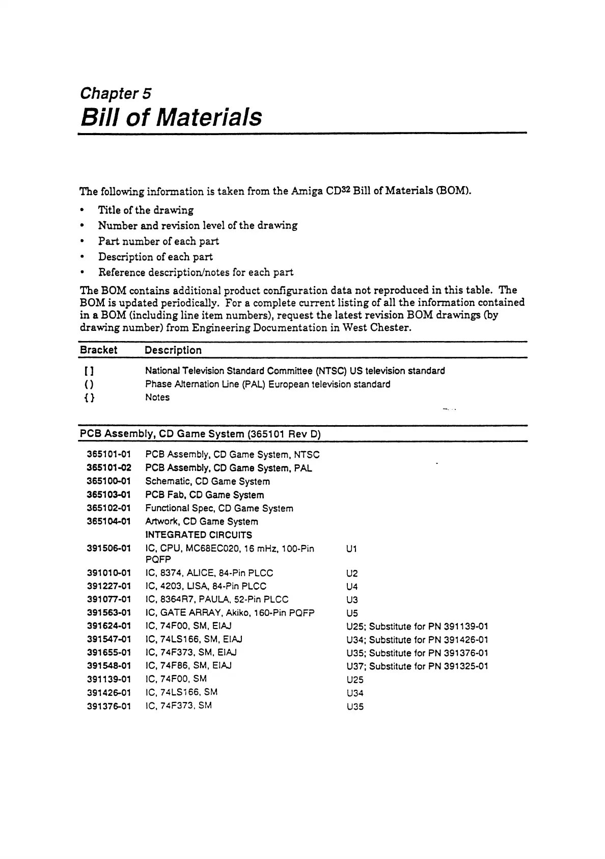 The following Information is taken from the Amiga CD32 Bill of Materials (BOM).
