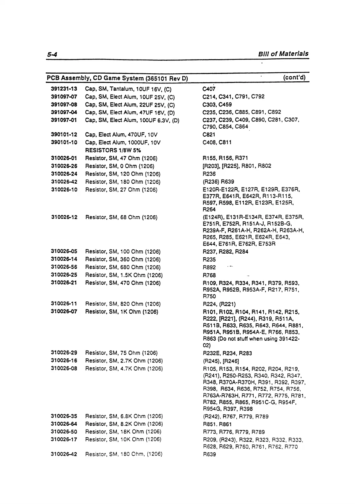 310026-26 Resistor, SM, 0 Ohm (1206)