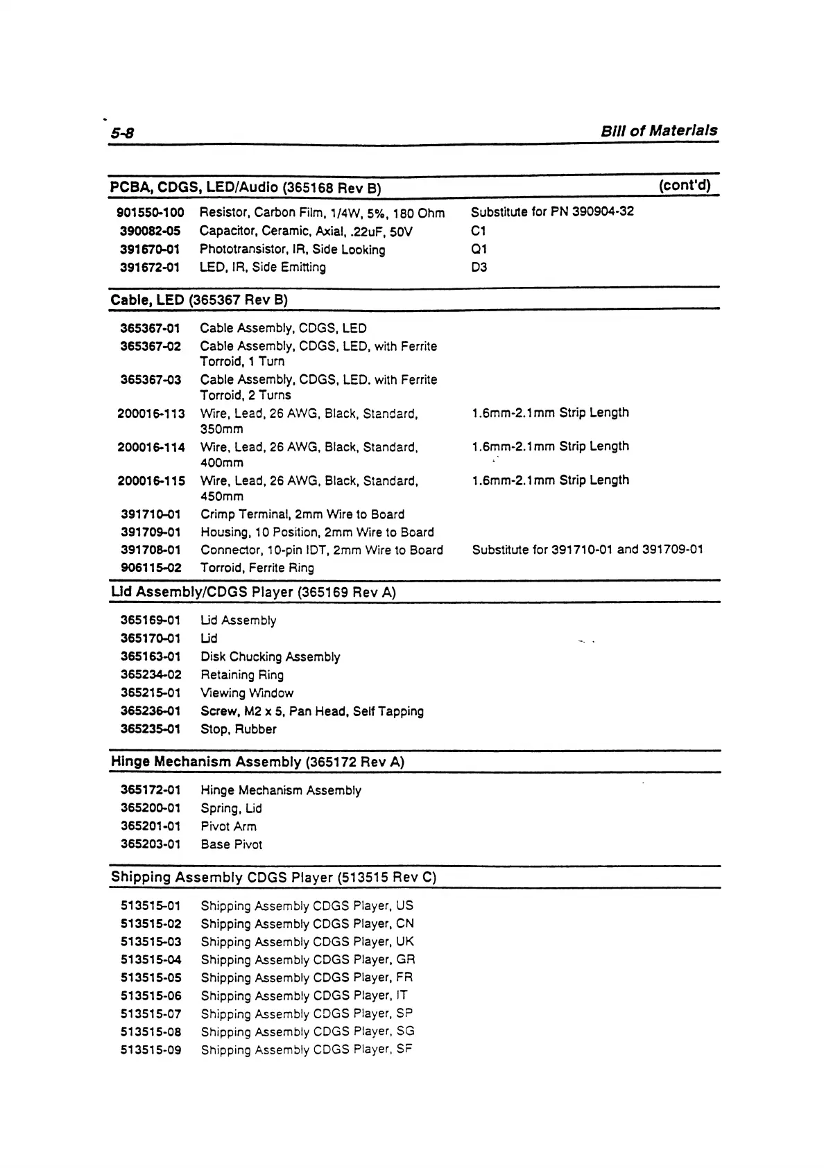 PCBA, CDGS, LED/Audio (365168 Rev B)