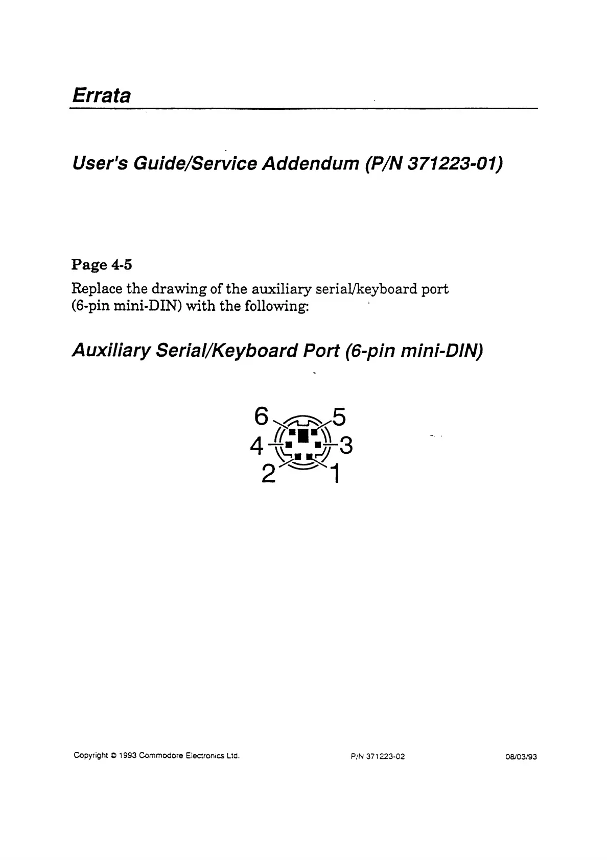 Auxiliary Serial/Keyboard Port (6-pin mini-DIN)