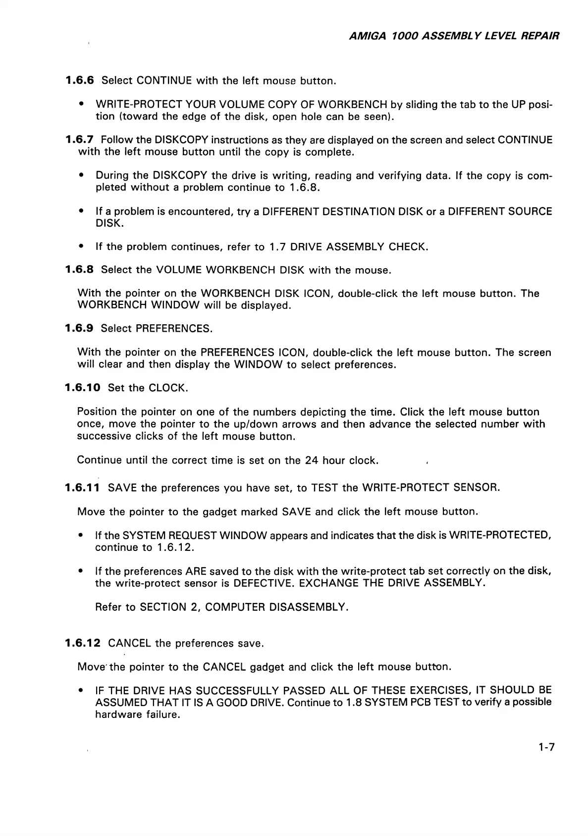 AMIGA 1000 ASSEMBLY LEVEL REPAIR