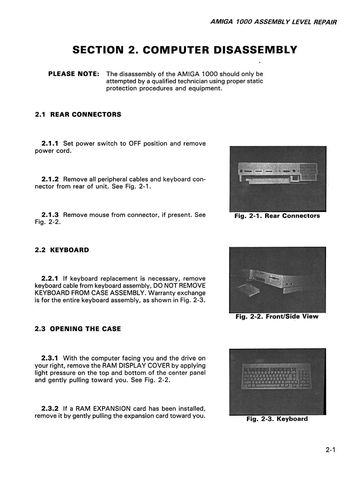 PLEASE NOTE: The disassembly of the AMIGA 1000 should only be