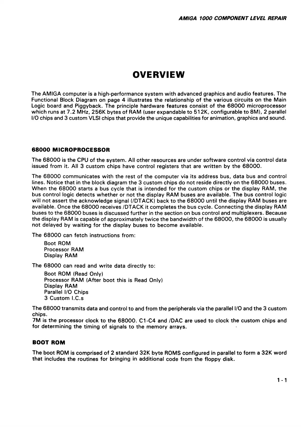 AMIGA 1000 COMPONENT LEVEL REPAIR