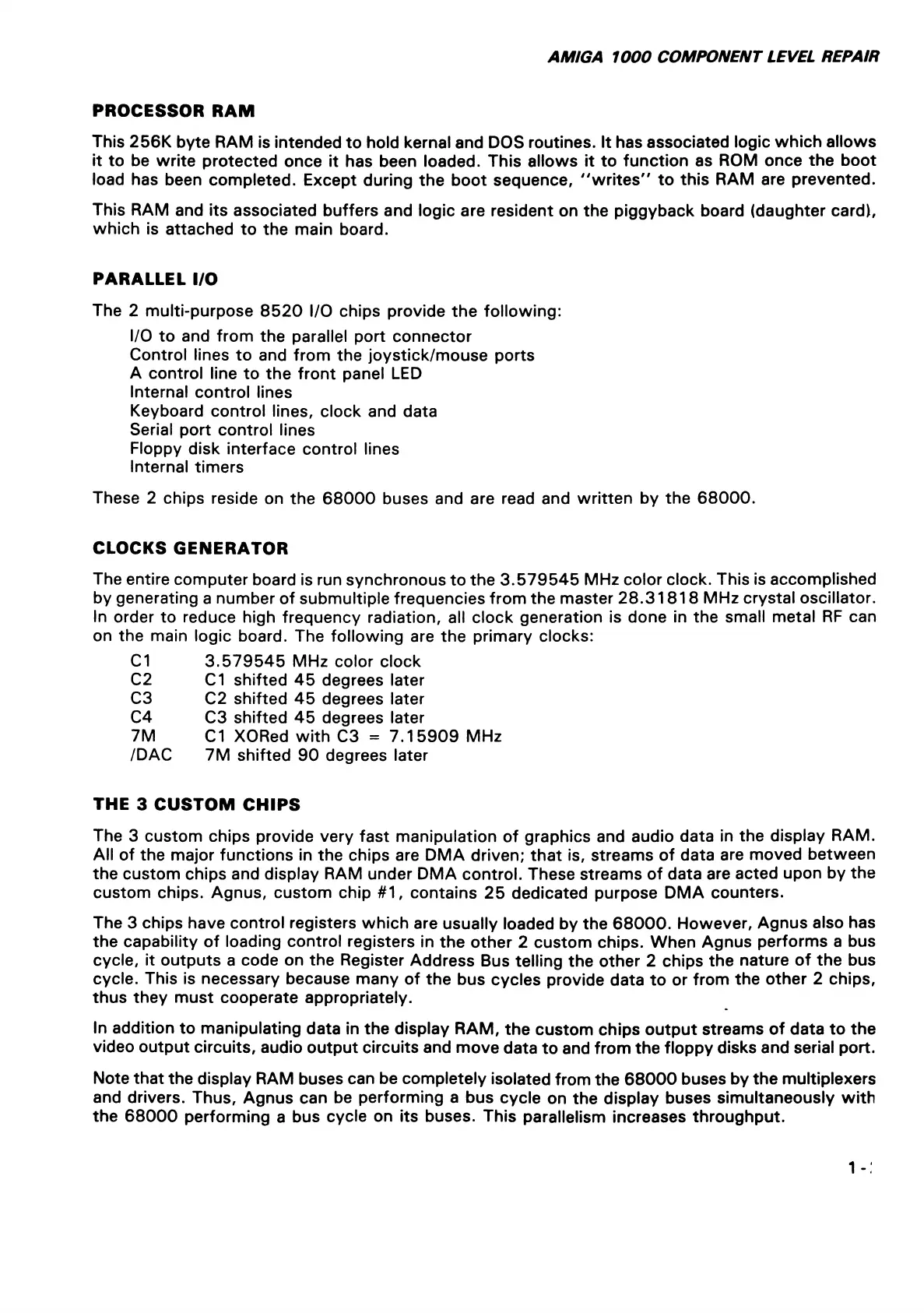 AMIGA 1000 COMPONENT LEVEL REPAIR