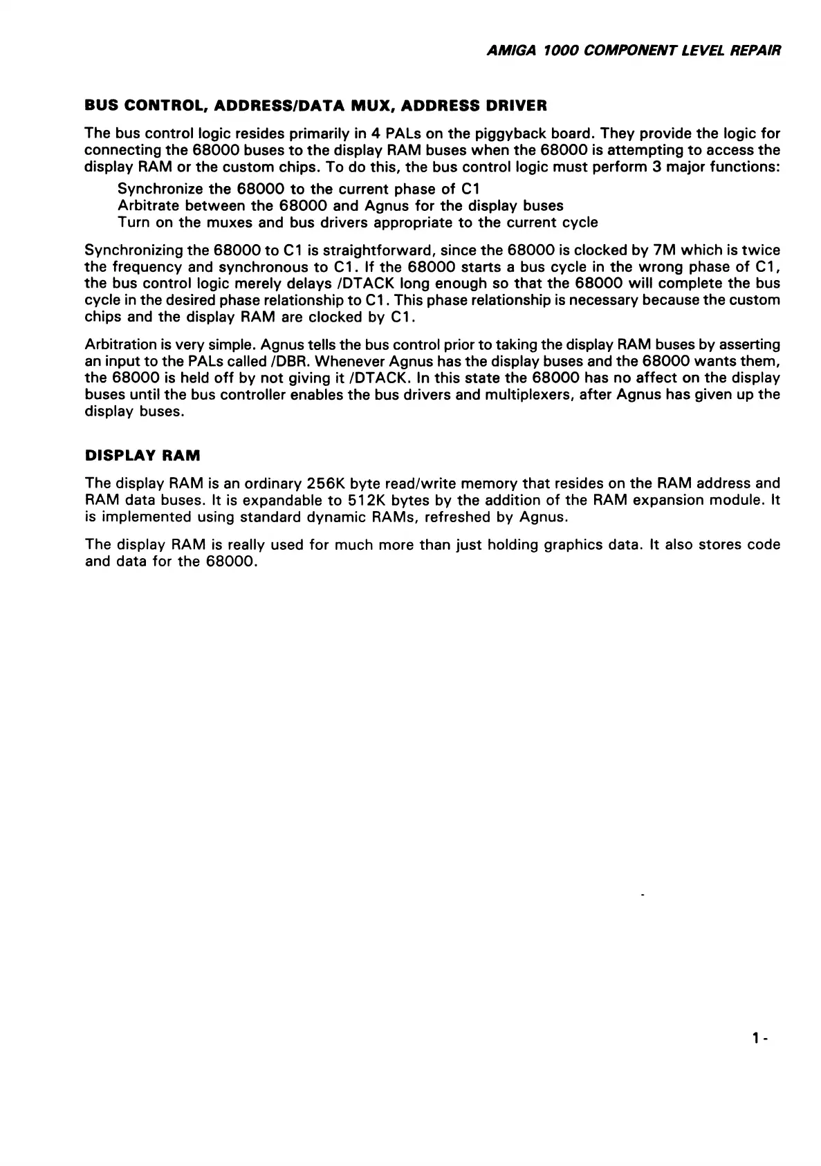 AMIGA 1000 COMPONENT LEVEL REPAIR