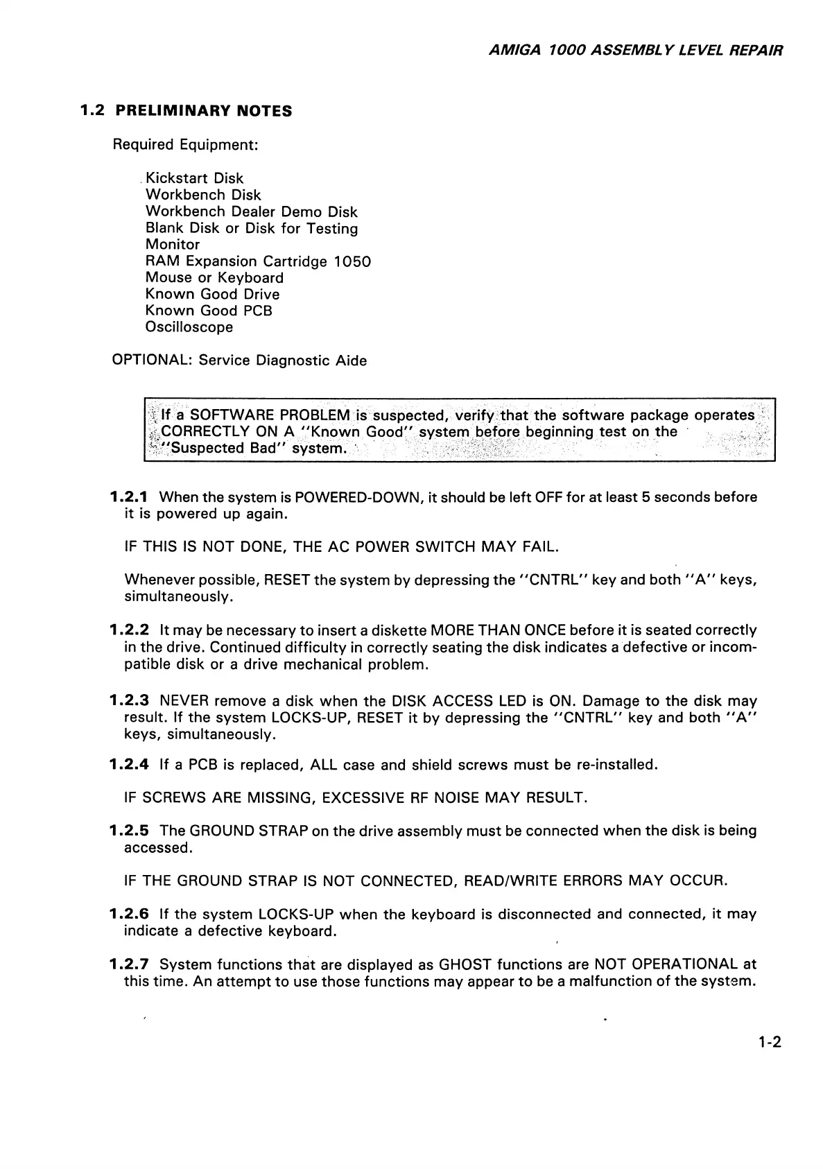 AMIGA 1000 ASSEMBLY LEVEL REPAIR