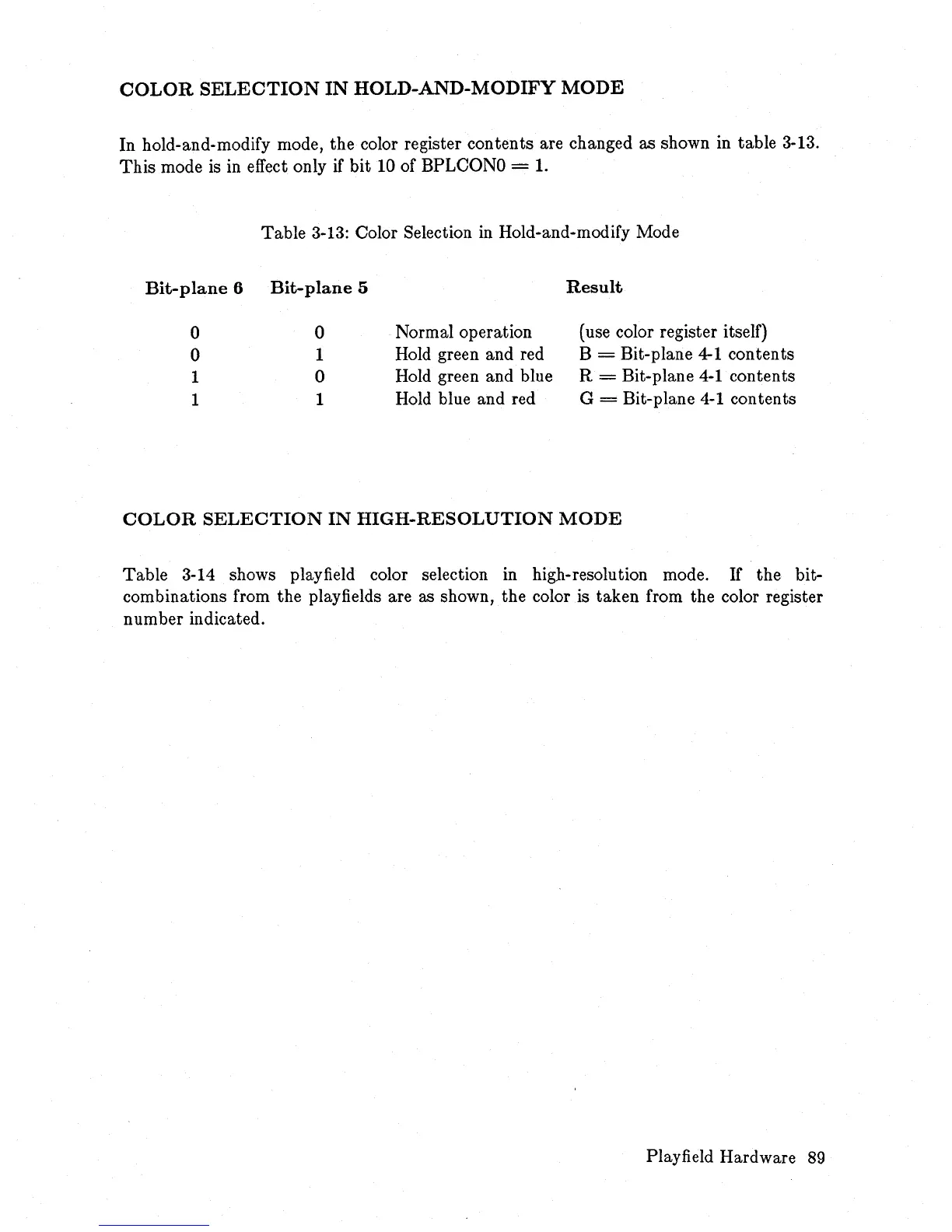 In hold-and-modify mode, the color register contents are changed as shown in table 3-13.