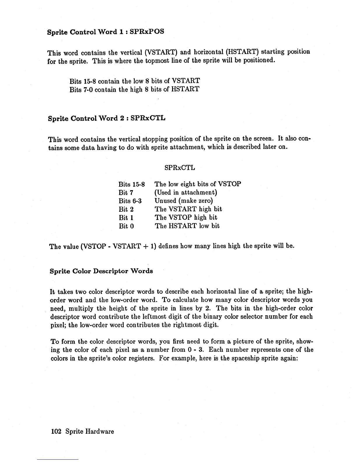 takes two color descriptor words to describe each horizontal line of a sprite; the high-