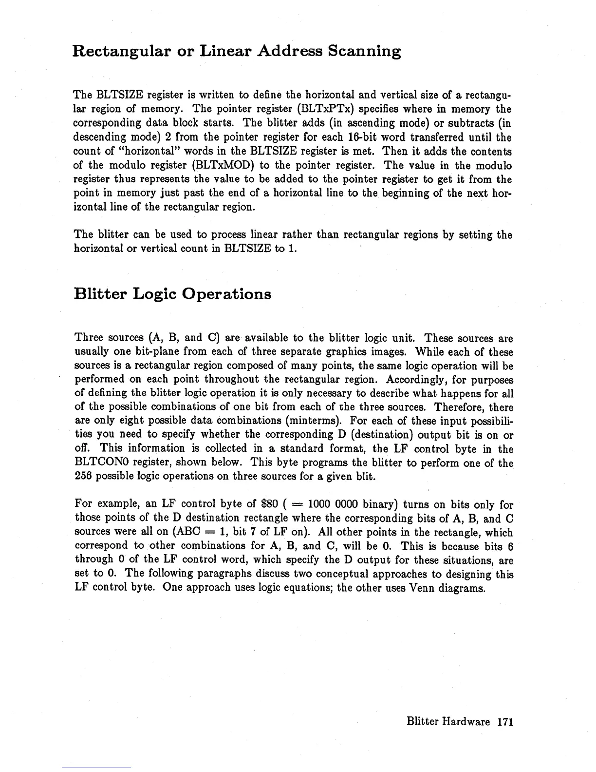 lar region of memory. The pointer register (BLTxPTx) specifies where in memory the