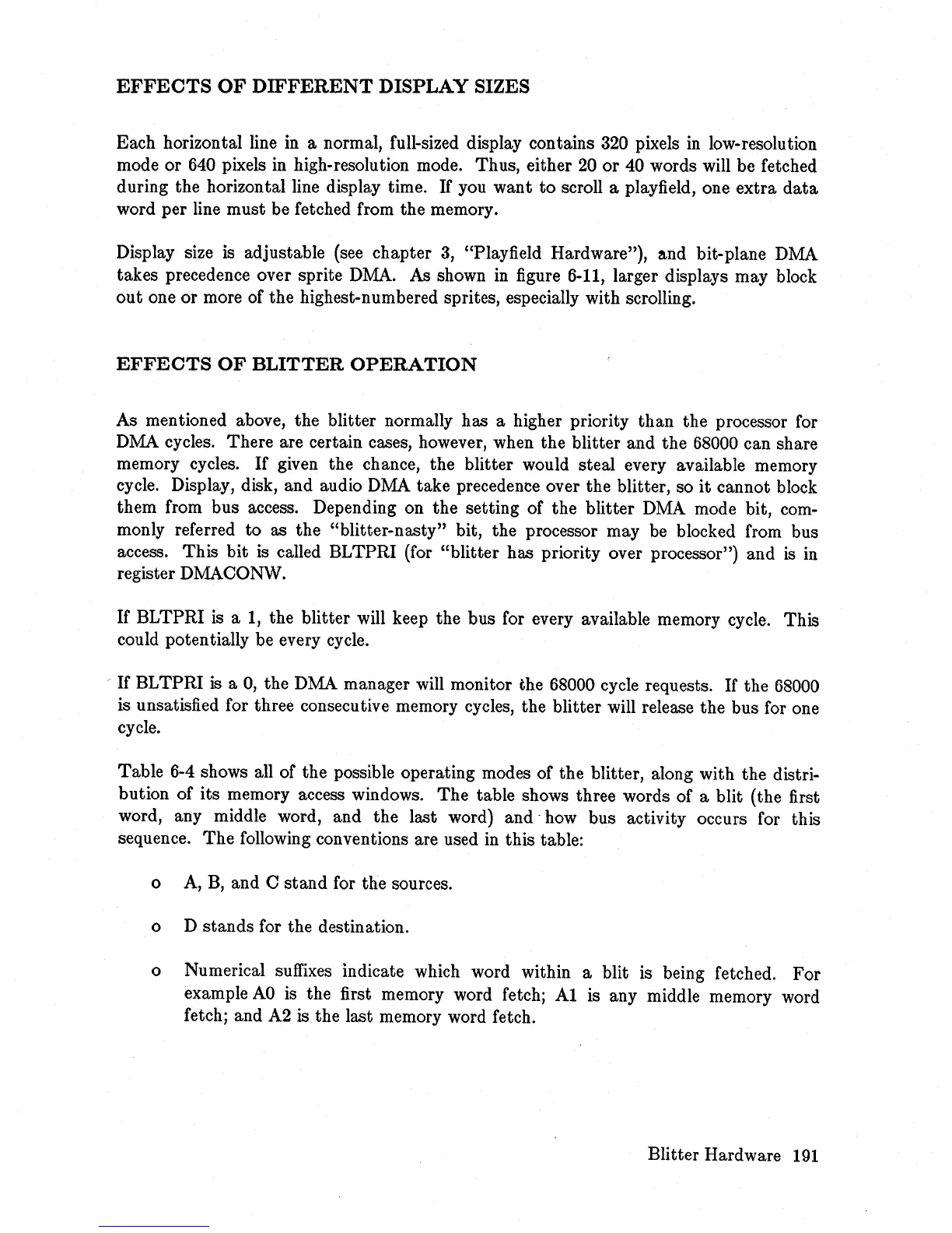 is unsatisfied for three consecutive memory cycles, the blitter will release the bus for one