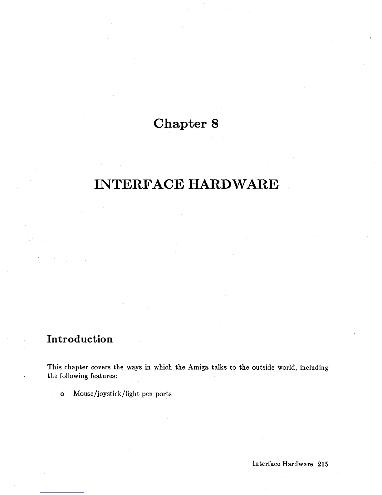 Commodore Amiga - Chapter 8 INTERFACE HARDWARE; Introduction