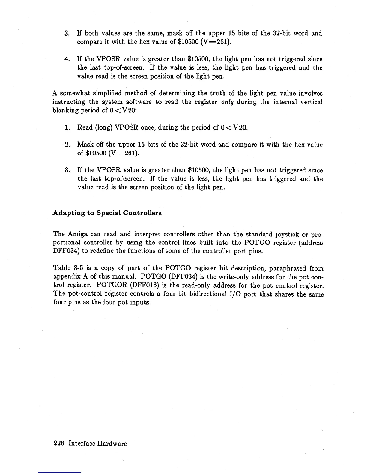 the VPOSR value is greater than $10500, the light pen has not triggered since
