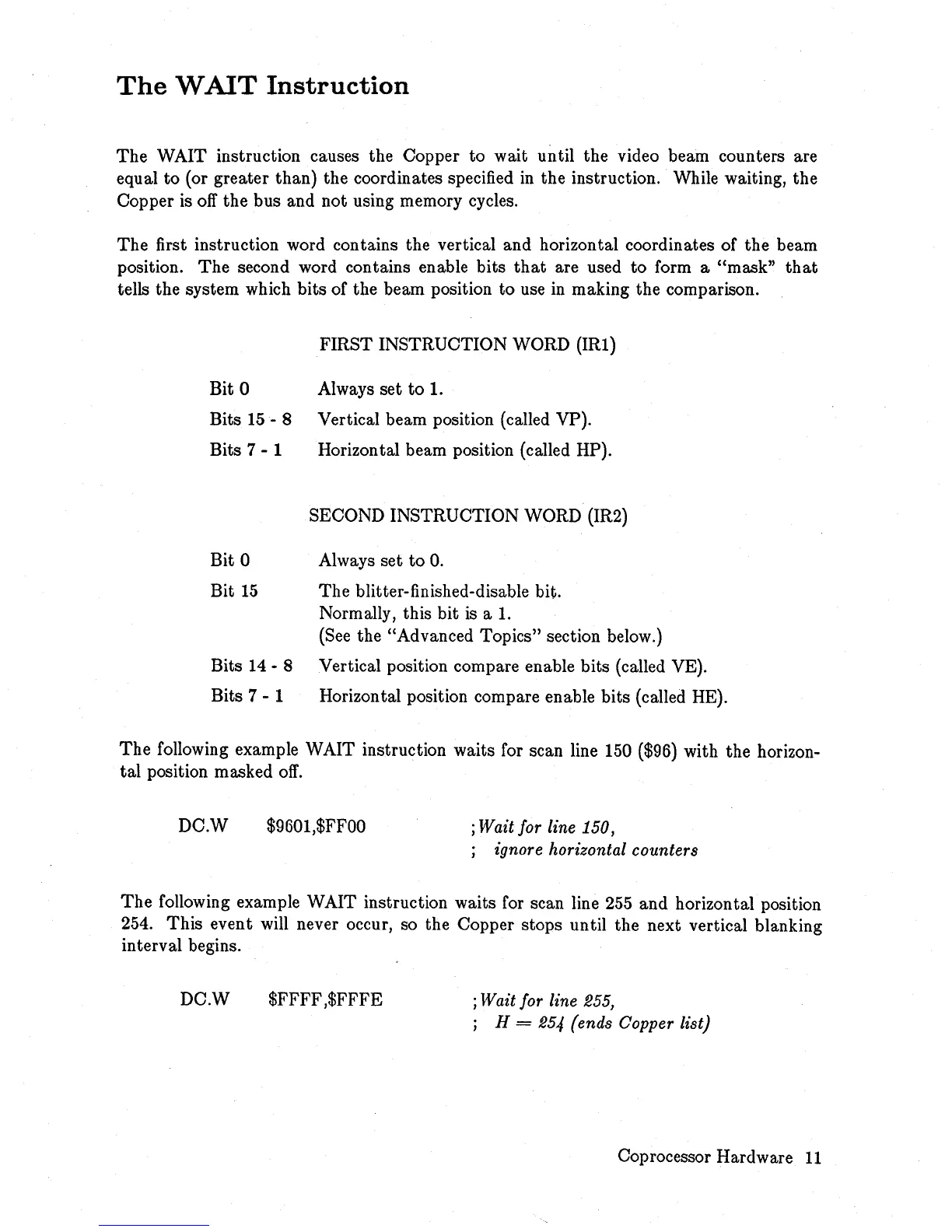 WAIT instruction causes the Copper to wait until the video beam counters are