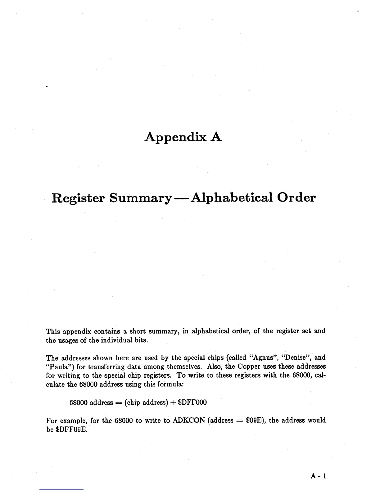 The addresses shown here are used by the special chips (called "Agnus", "Denise", and
