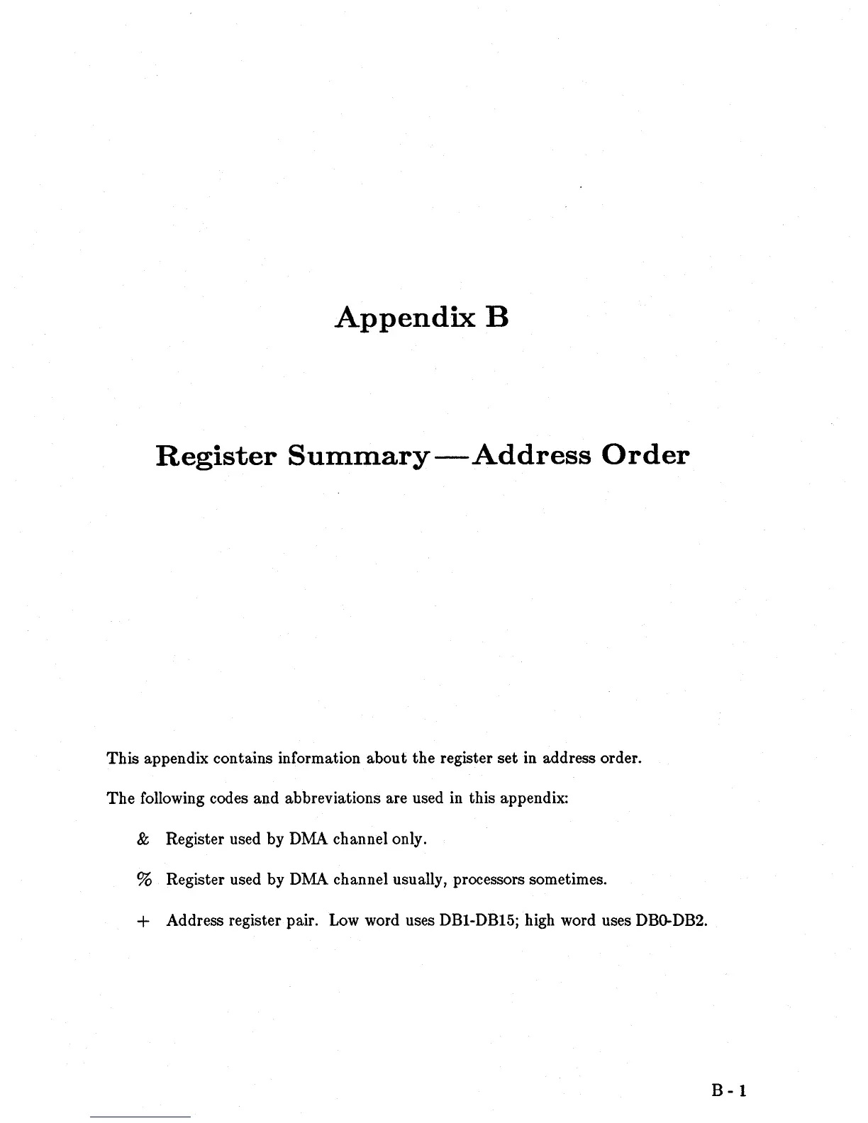 This appendix contains information about the register set in address order.