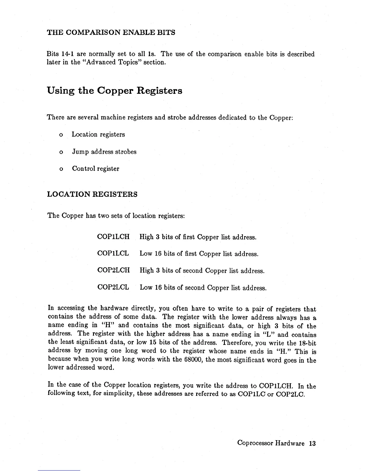 There are several machine registers and strobe addresses dedicated to the Copper: