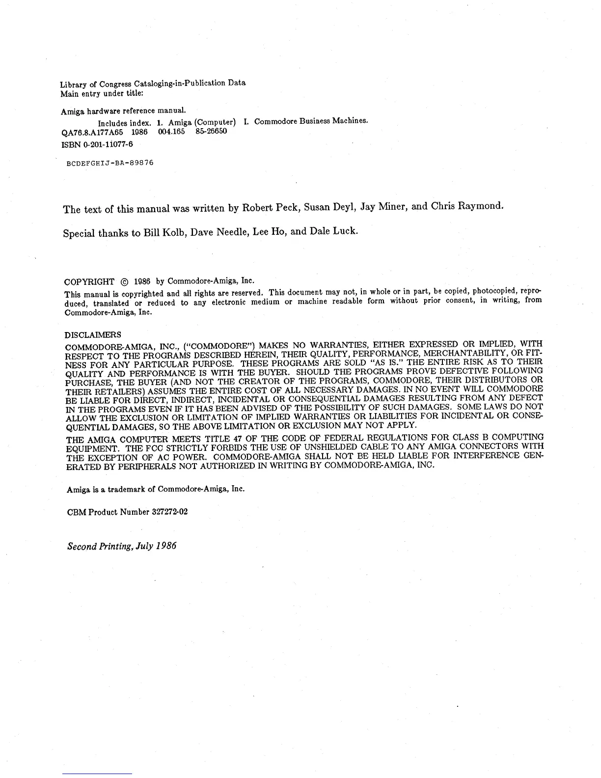 ERATED BY PERIPHERALS NOT AUTHORIZED IN WRITING BY COMMODORE-AMIGA, INC.