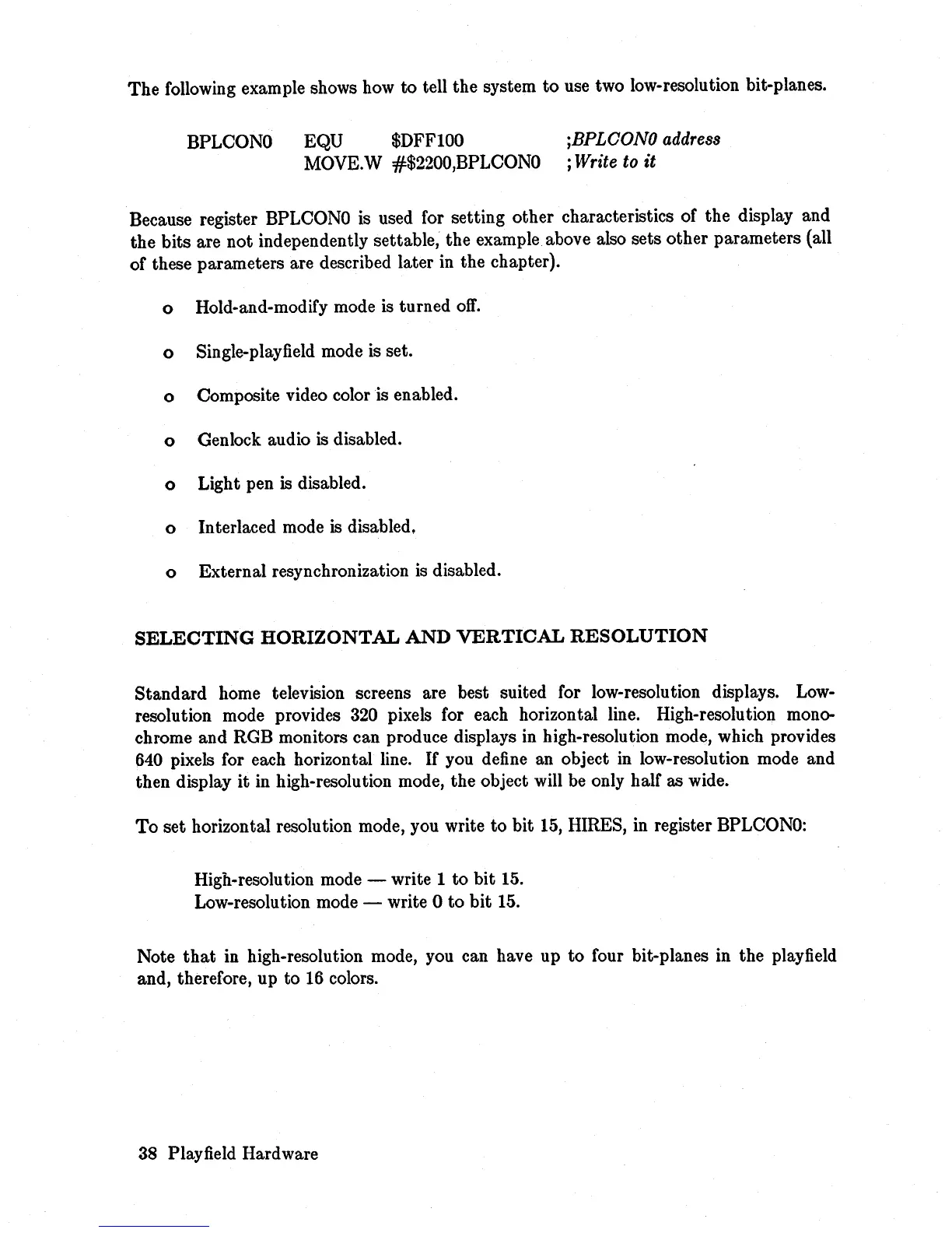 MOVE.W #$2200,BPLCONO