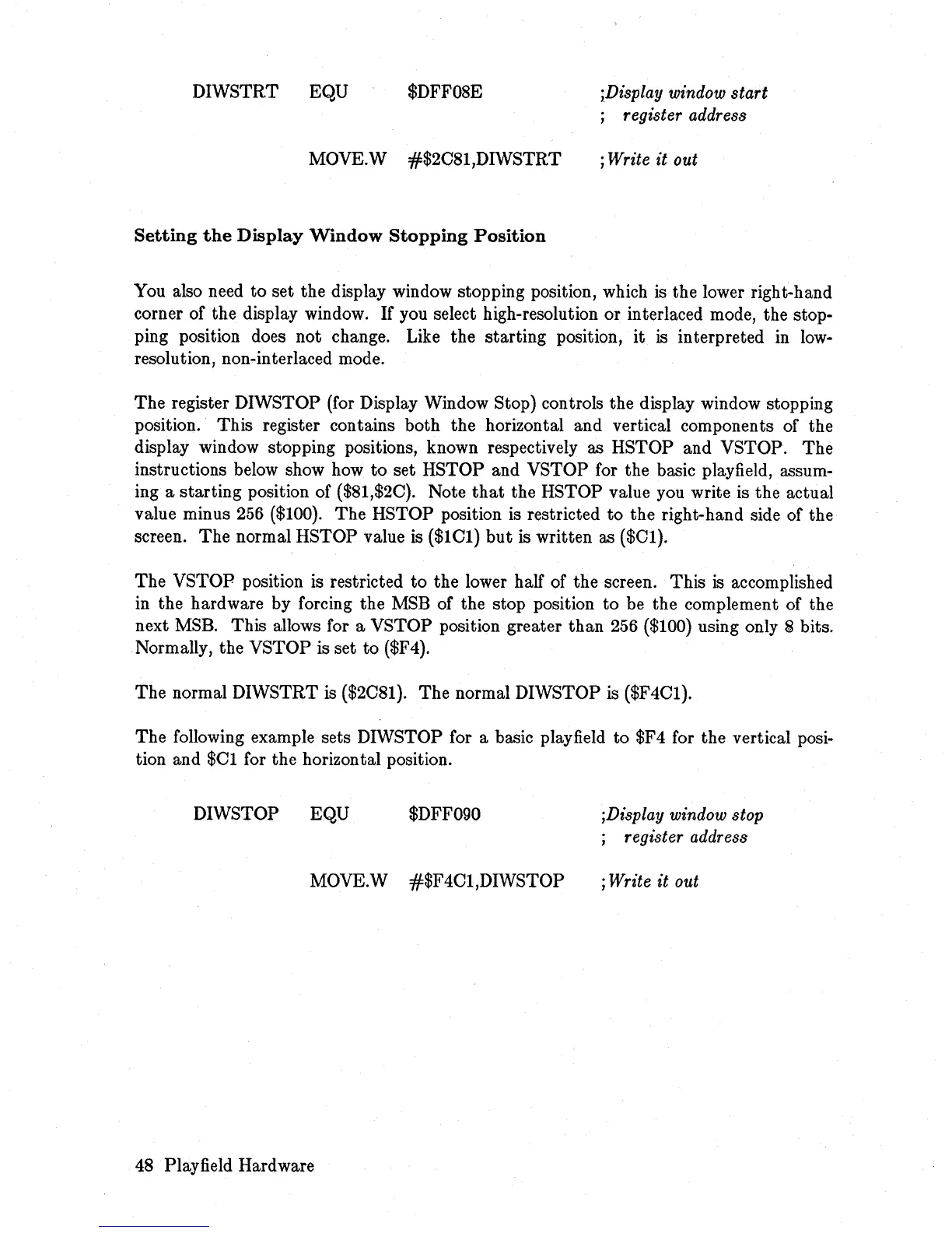 register DIWSTOP (for Display Window Stop) controls the display window stopping