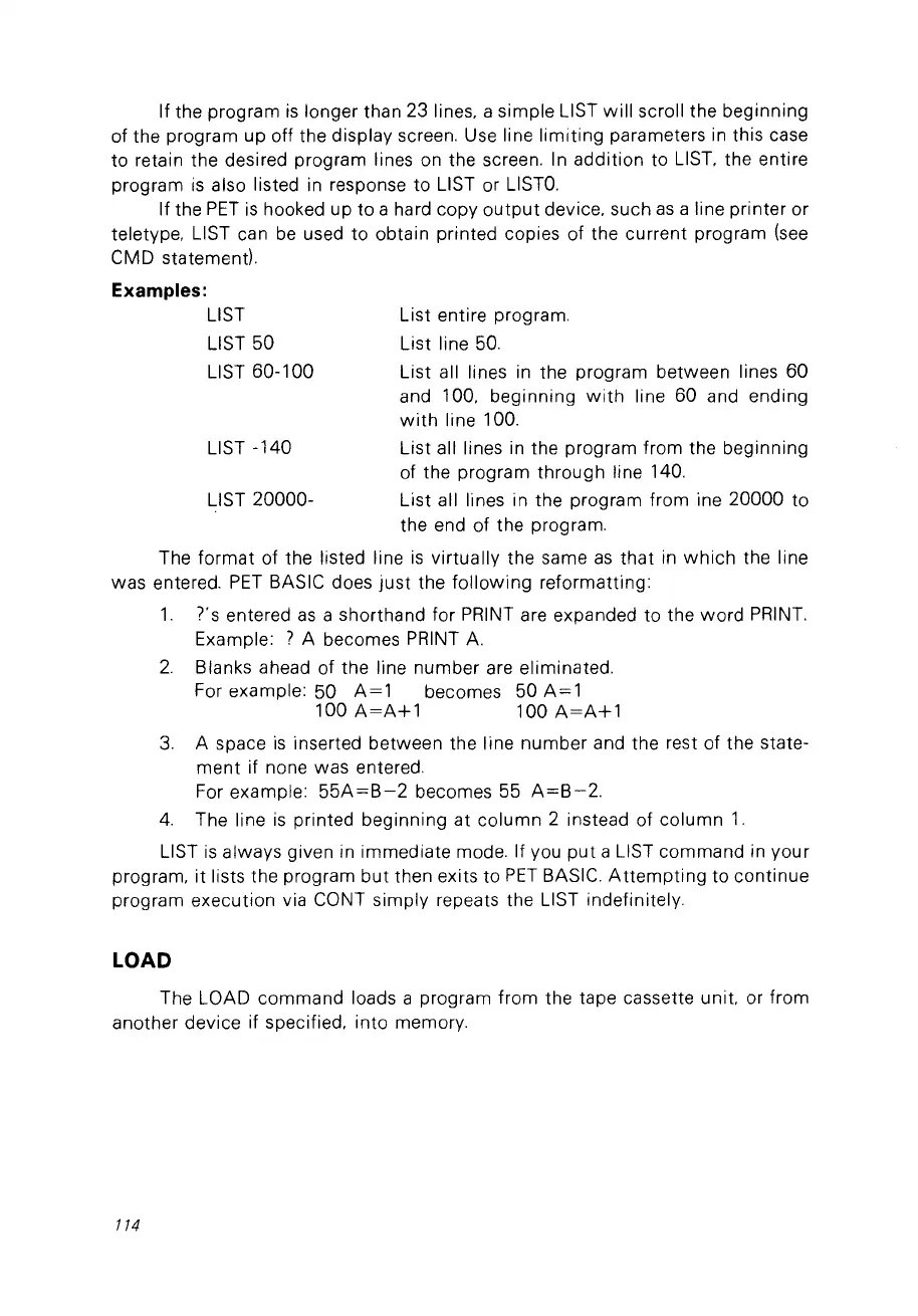 to retain the desired program lines on the screen. In addition to LIST. the entire