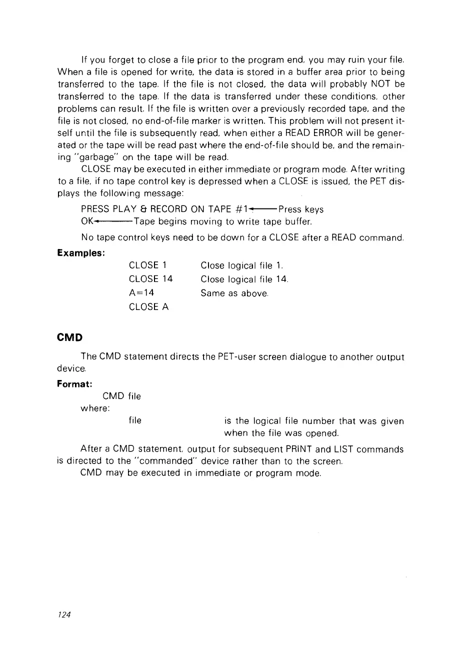 The CMD statement directs the PET-user screen dialogue ta another
