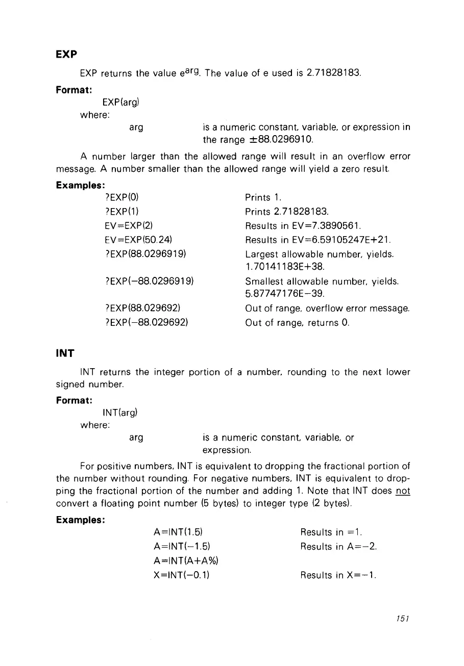 EXP(arg)