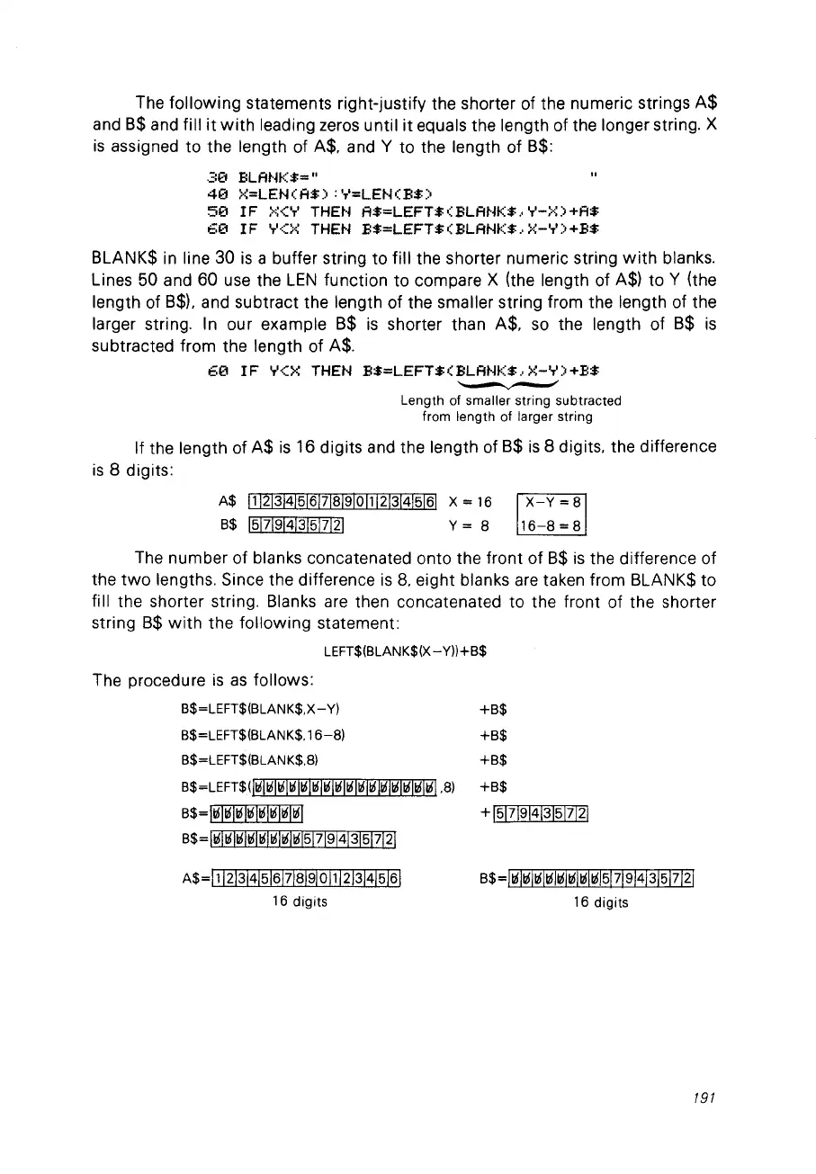 fill the shorter string. Blanks are then concatenated ta the front of the shorter