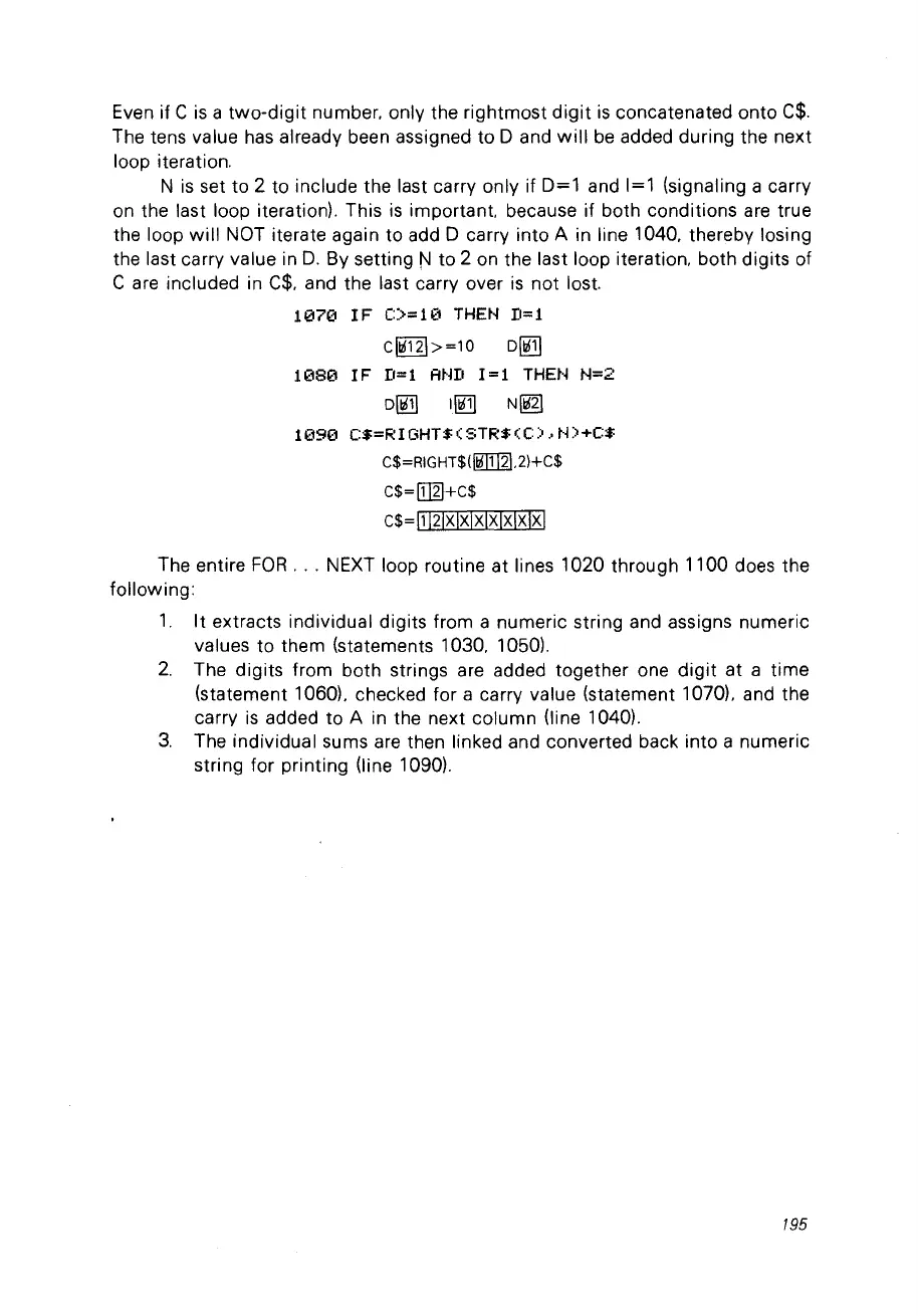 1060), checked for a carry value (statement 1070), and the