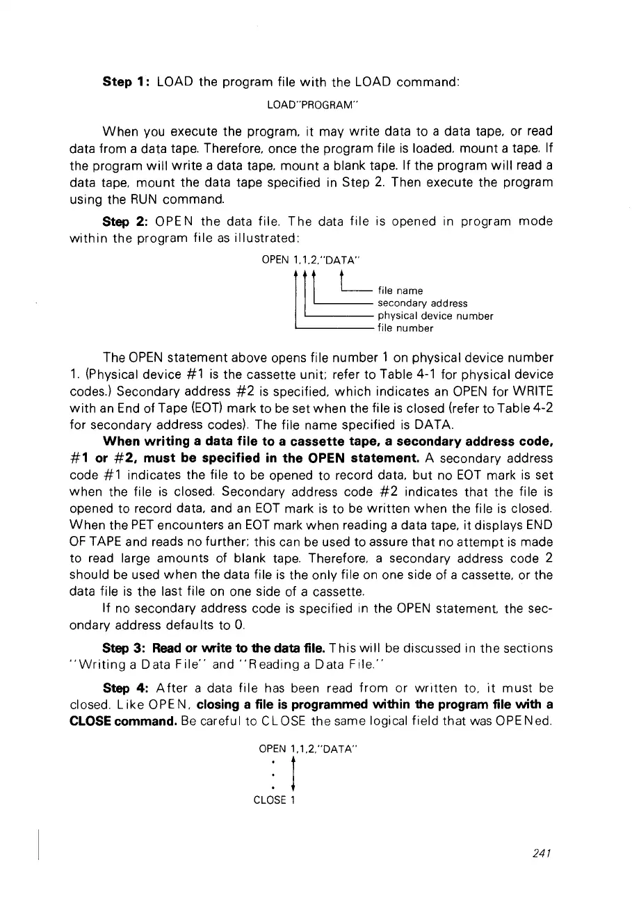 for secondary address codes). The file name specified
