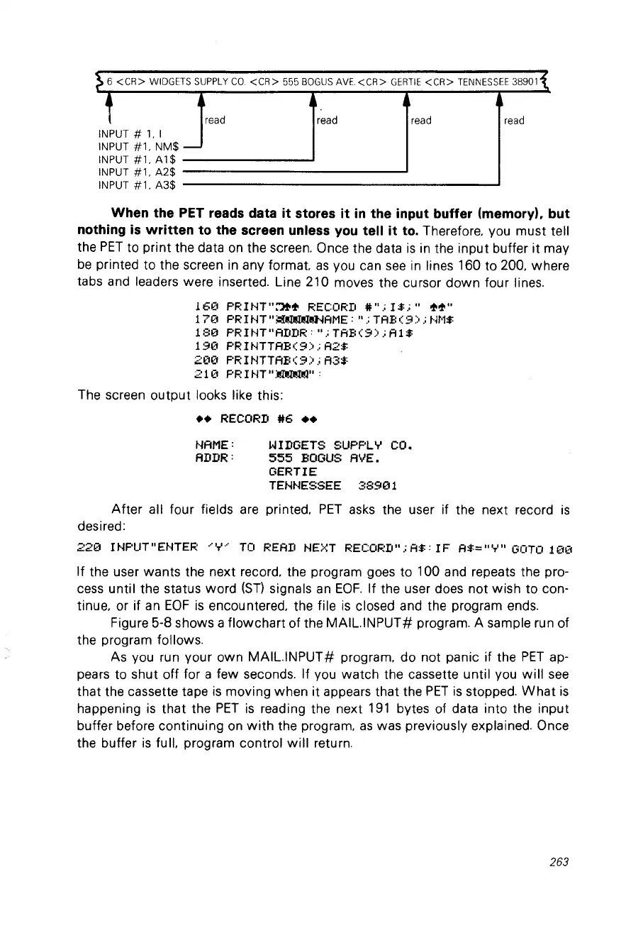 If the user wants the next record, the program goes ta 100 and repeats the pro-