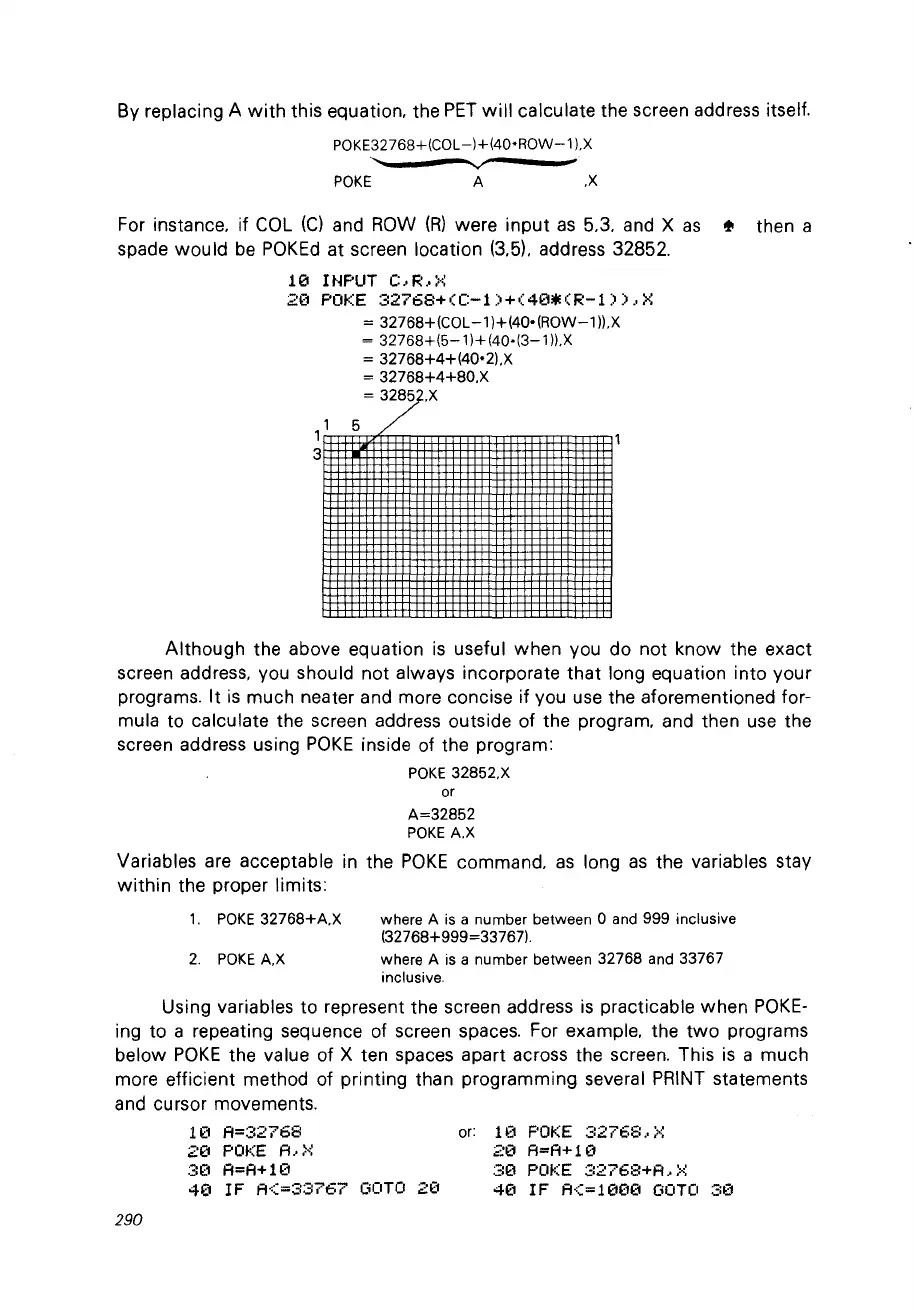 = 32768+(COL-1)+(40·(ROW-1)),X