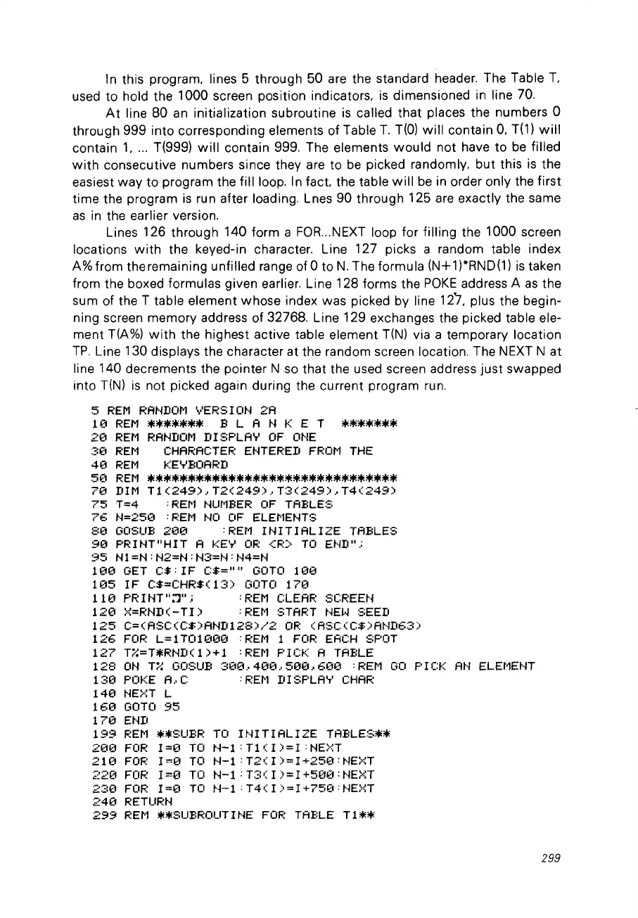 ning screen memory address of 32768. Line 129 exchanges the picked table ele-