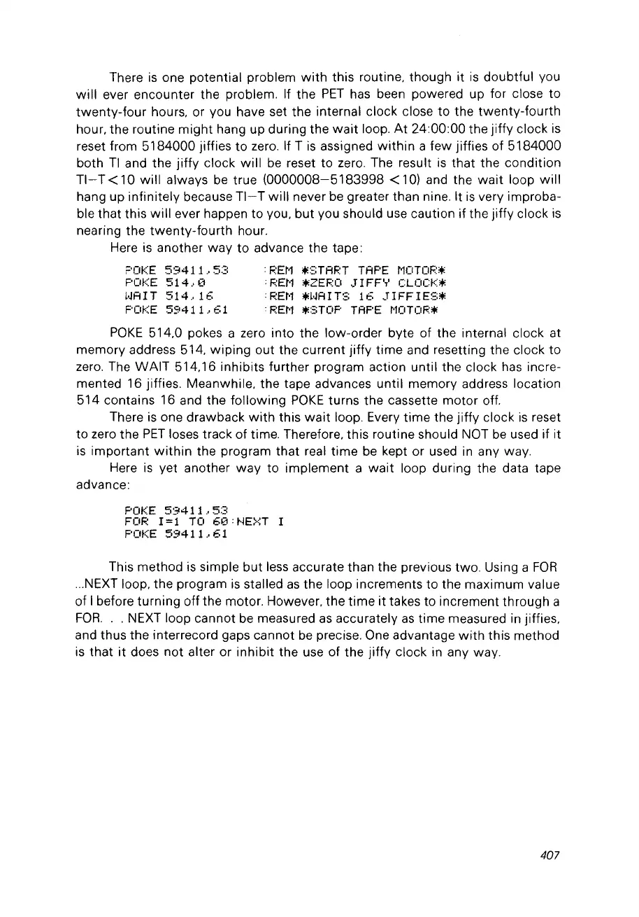 mented 16 jiffies. Meanwhile. the tape advances until memory address location