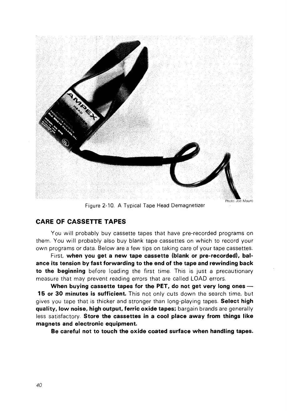 programs or data. Below are a few tips on taking care of your tape cassettes.