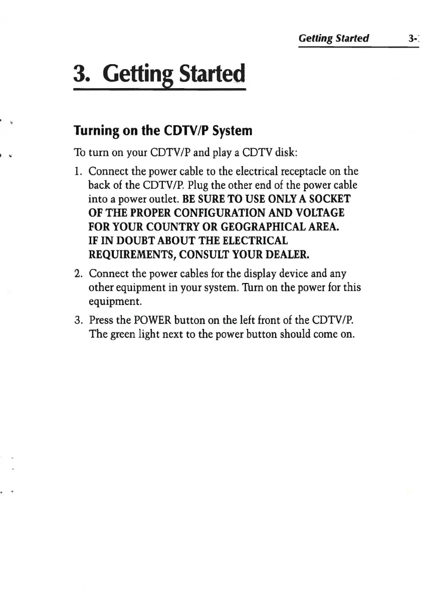 Commodore CDTV/P - 3 Getting Started; Turning on the CDTV;P System