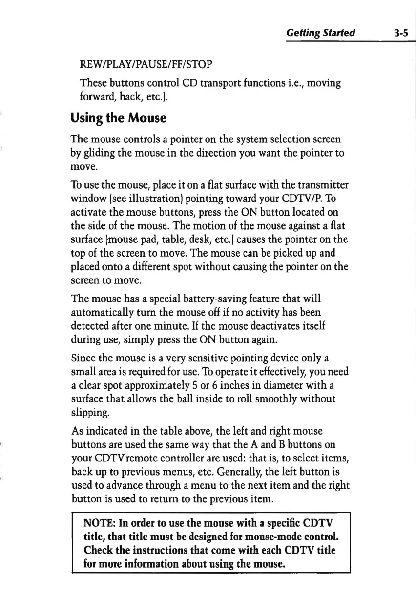 detected after one minute. If the mouse deactivates itself
