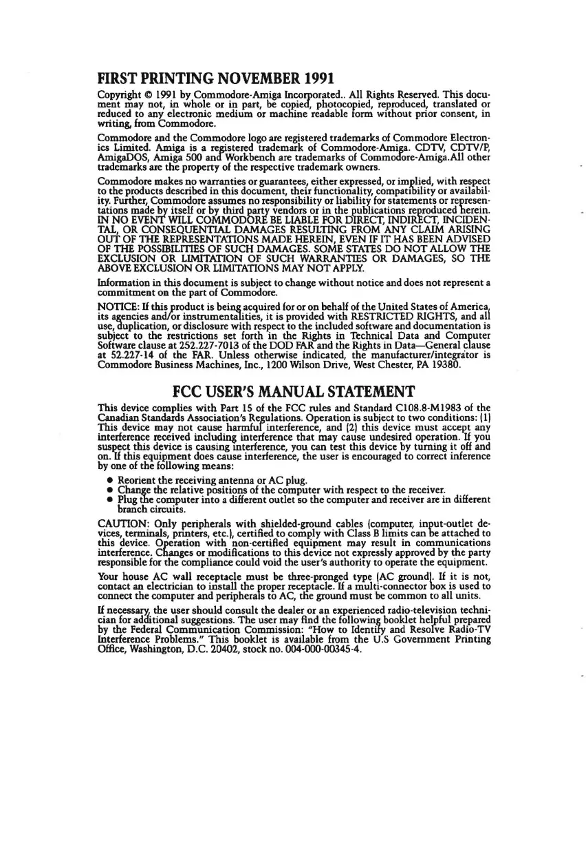 AmigaDOS, Amiga 500 and Workbench are trademarks of Commodore-Amiga.All other